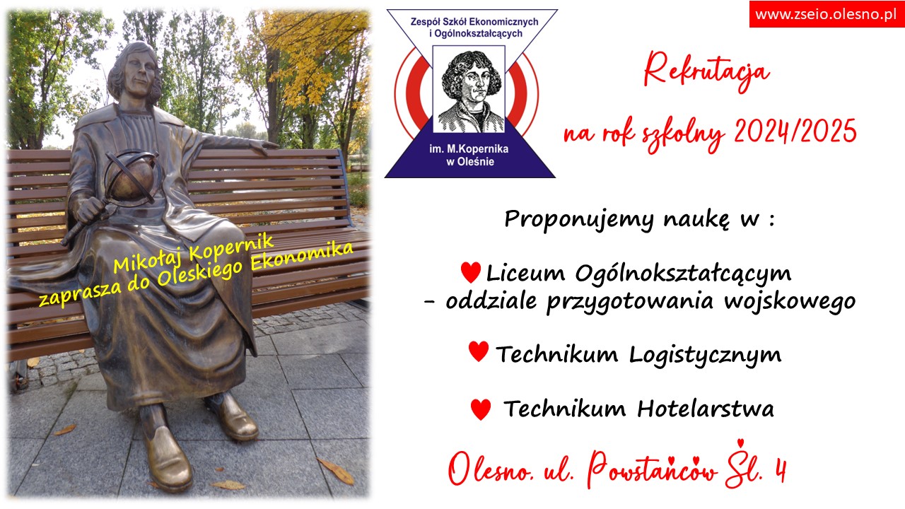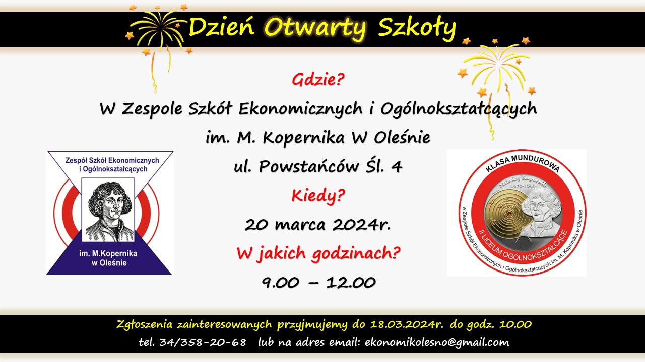 Data publikacji: 2024-03-12 09:29:34 Oferta szkoły ponadpodstawowej Na prośbę Dyrekcji ZSOiE w Oleśnie zamieszczam materiały promocyjne szkoły. Załączniki Dni Otwarte Szkoły.jpg 179.29kB POBIERZ pismo_ogolneDniOtwarte.pdf 139.52kB POBIERZ podanie_aktualne_2024_2025.pdf 181.82kB POBIERZ plakat_z_MKopernikiem.jpg 241.78kB POBIERZ Regulamin Rekrutacji na rok szkolny 2024_2025.pdf 241.22kB POBIERZ