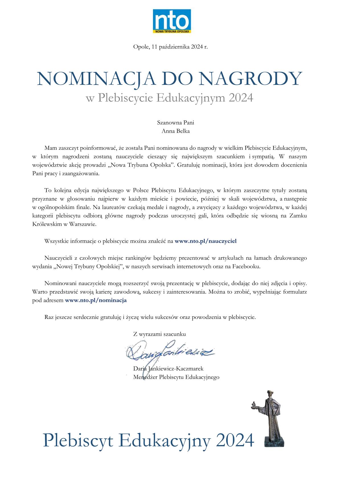 Data publikacji: 2024-10-18 11:46:28 Nominacja do nagrody szkoła roku oraz nominacje dla 4 nauczycieli naszej szkoły do nagrody nauczyciel roku. Załączniki Nominacja_Anna_Belka.jpg 151.67kB POBIERZ Nominacja_Anna_Wolna.jpg 151.73kB POBIERZ Nominacja_Malgorzata_Skiba.jpg 152.20kB POBIERZ Nominacja_Wioletta_Kotarska.jpg 152.19kB POBIERZ